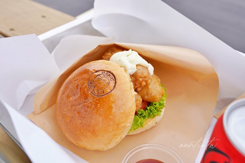 實在是很喜歡他們炸魚漢堡的口味,麵衣非常酥脆,還加了塔塔醬、紫洋蔥在裡頭提味,吃漢堡裡頭最愛的配料就是酸黃瓜再來就是生洋蔥,吃起來十分夠味,他們家的炸魚也是使用野生紅魽魚,魚肉大塊又鮮嫩,下次來一定要點炸物拼盤,以前在英國走跳一陣子,全英排名前幾名的炸魚薯條都吃過了,味道其實都很普通,又油又膩,這裡的炸紅魽魚反倒比鱈魚好吃太多了!