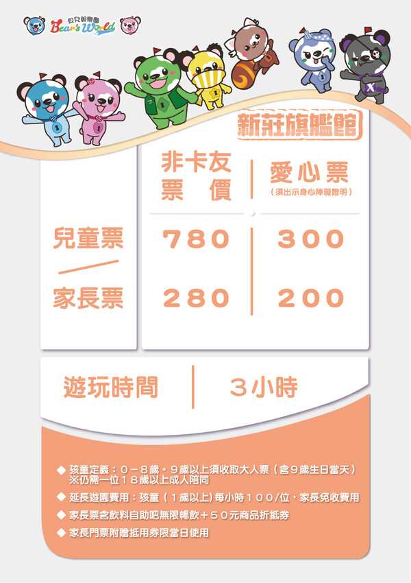 5.入園一次3小時,超過遊樂時間需加收超時費,每位兒童100元/時。
