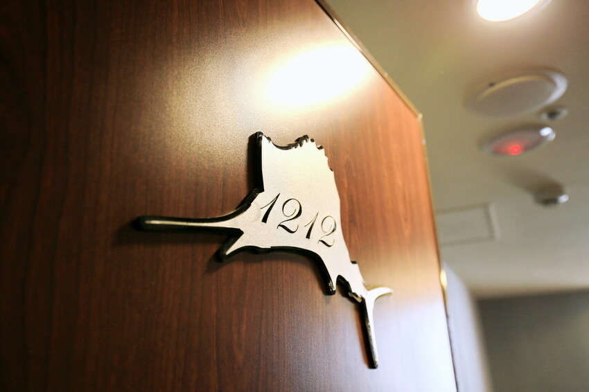 老爺爺與小老婆選擇行政套房,雖然說飯店名稱是Fish-Hotel,不過飯店並沒有四處是魚形裝飾,門上的旗魚造型門牌反而是亮點。