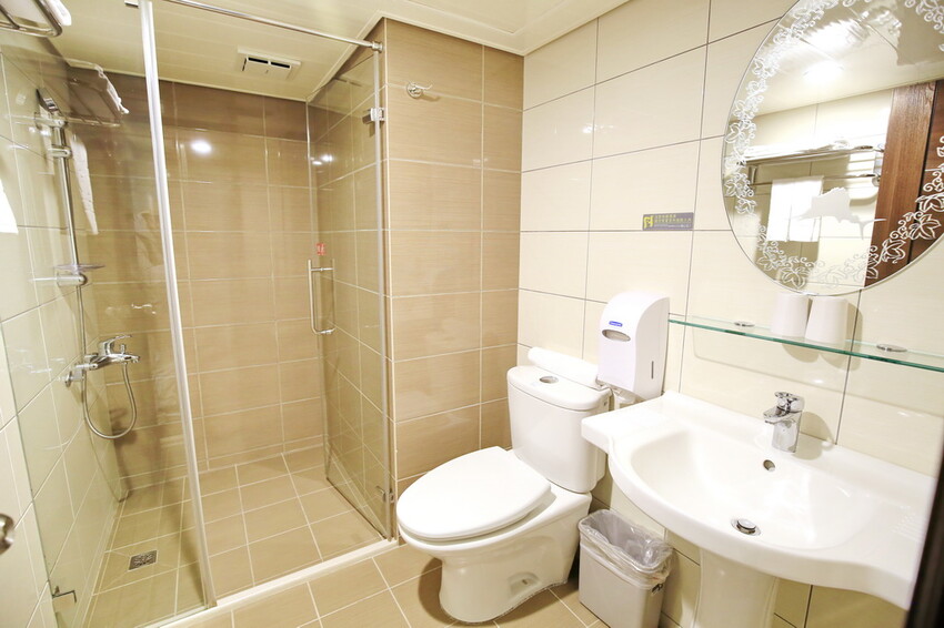 乾溼分離的浴室,整理仔細,盥洗用具齊全、毛巾潔白乾淨。