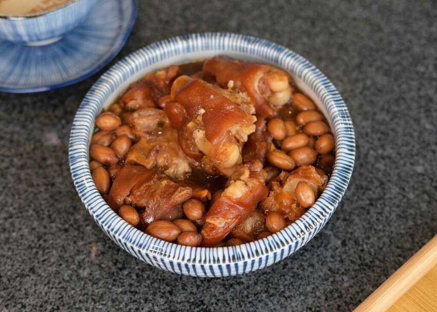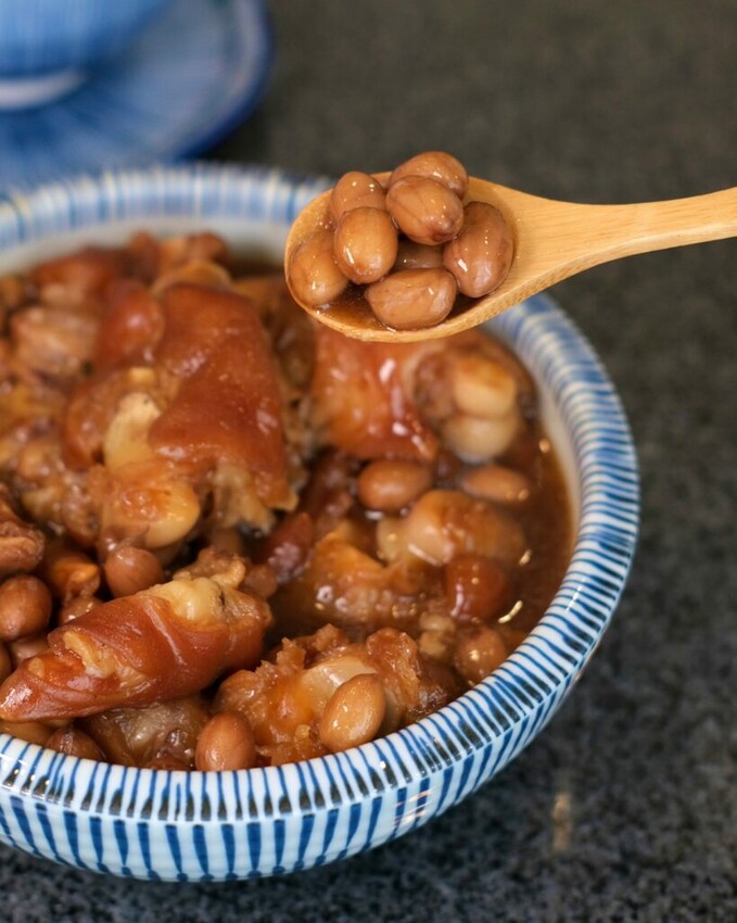 ▼主角豬腳充滿嚼感和豐富的膠質,咬的同時能感受到淡淡花生香,而釋放出來的膠質,使花生擁有彈牙的特殊口感,是最讓人印象深刻的菜色。