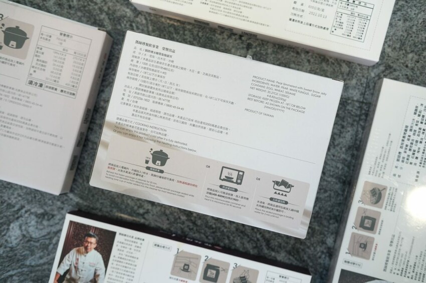 ▼將新鮮雪梨與銀耳小火慢燉的冰糖雪梨燉銀耳,禮盒組合共有八入裝,曾榮獲比利時國際風味評鑑肯定~