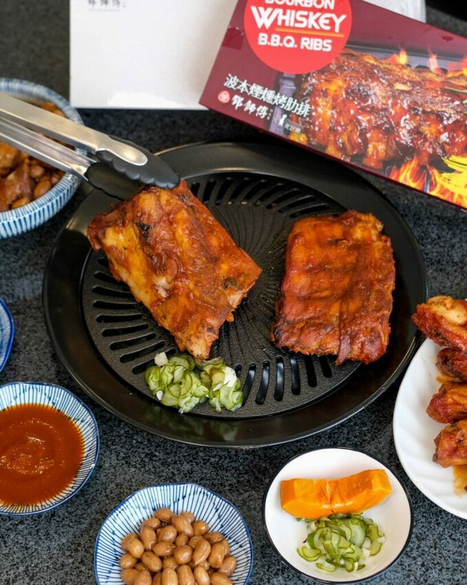 ▼在烤盤加熱時就能聞到濃郁的煙燻香,吃起來則帶有鹹甜滋味,肋排口感則是外酥內軟嫩,讓人容易咀嚼入口。