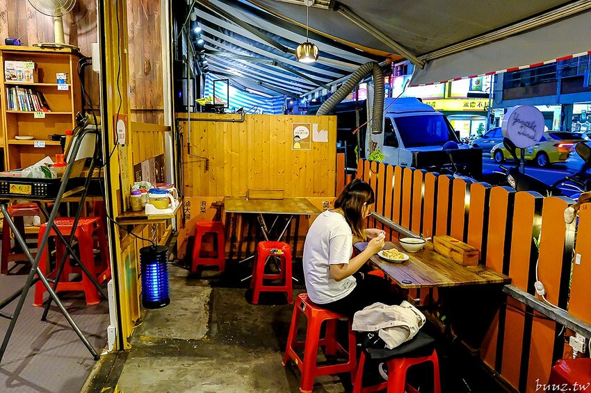 如果覺得貨櫃屋內比較悶熱,也可以考慮遮陽棚下的戶外座位,夏日晚上坐在外面吃臭豆腐會比較涼快些。