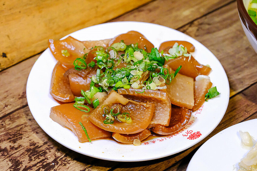 此外還有賣豬血湯、菜頭湯、綜合湯、大腸麵線、臭臭湯可以搭配著點,小菜的部分則有泡菜、滷大腸及最新推出的滷豬皮。