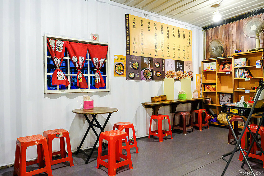 原本「袁老臭豆腐」只有簡單的攤位,現在把隔壁貨櫃屋給一併納入,規劃了一些座位,方便讓客人在裡面內用。