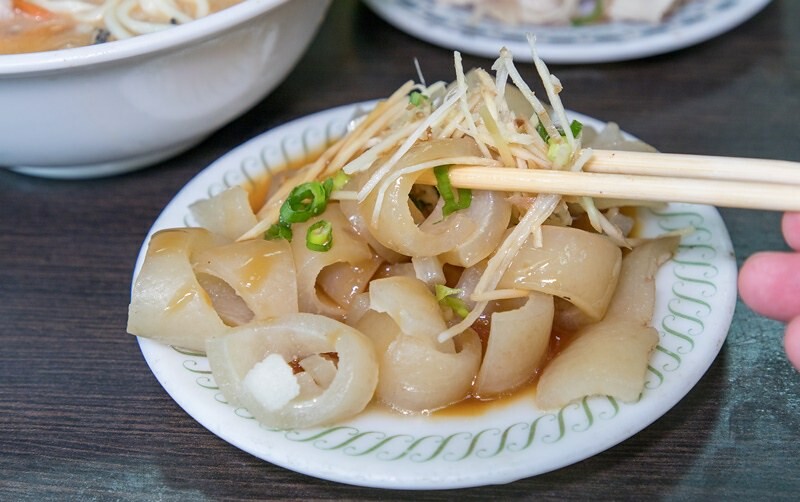 豬皮算是偏厚且帶著較多脆Q口感,處理的算是乾淨,味道就一般般。興許下次來嚐嚐另一樣招牌水餃和大滷麵。