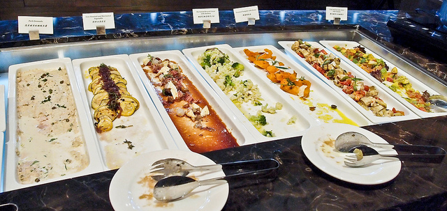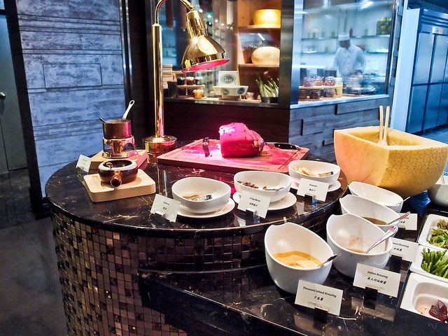 ●沙拉吧 ( 我比較傾向說它是肉品與起士與甜點檯 )