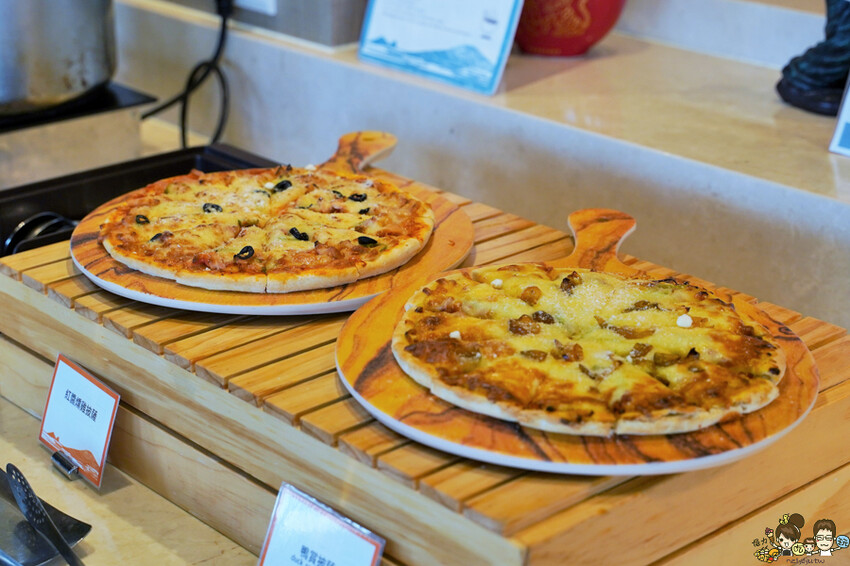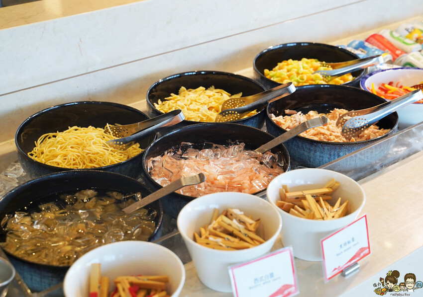 特別的是還有自選料理、醬料,現場烹煮的義大利麵