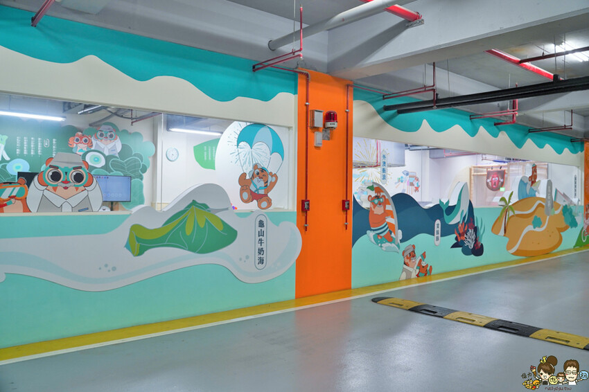 外牆也是設計出宜蘭特色景點,虎爺爺帶著虎孫子一起出遊去