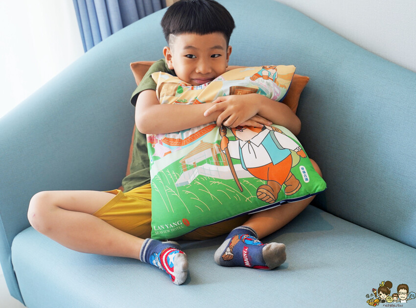 床上的抱枕也都是蘭陽烏石港海景酒店所獨家打造設計,只要透過官網訂房會免費贈送一顆抱枕