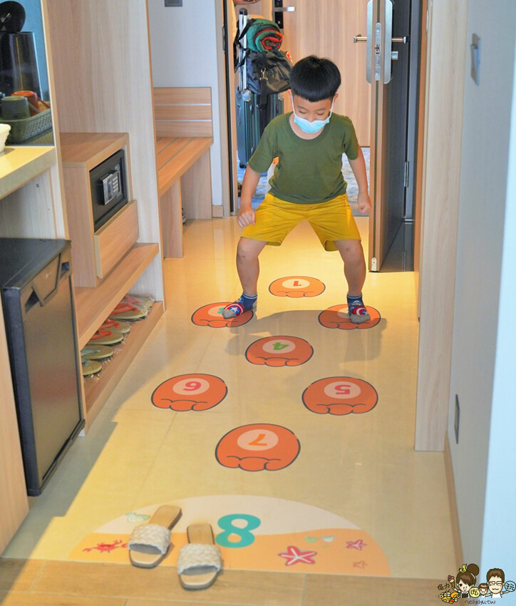 入住了童趣家庭客房(四人房),一踏入門就有童趣的腳印,讓孩子也開心跳跳玩樂