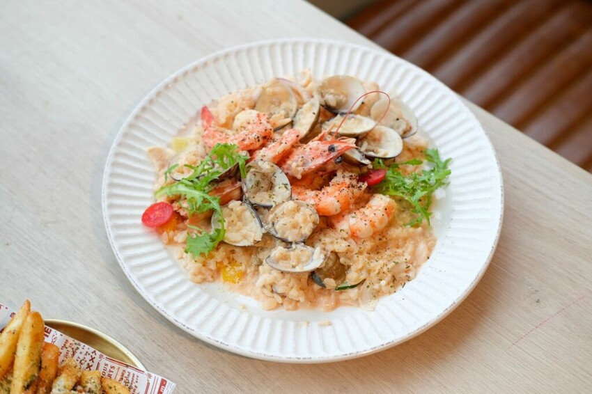 ▼燉飯的米心帶點微硬,同時滲透了白醬與海鮮的精華,是我很喜歡的那種口感。