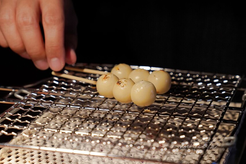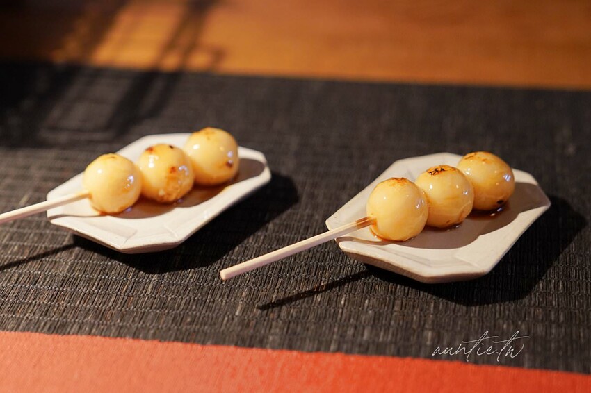 泡完茶飲之後,老闆默默地拿出瓦斯烤爐烤起糰子來,有點可愛。雖說東區的駅Eki 中崙駅烤糰子這陣子很紅,但是個人覺得 ASABAN TEA 的醬油糰子好吃很多耶!醬油味鹹甜適中,口感比較Q一些,兩家比較起來,個人覺得這裡的比較好吃。