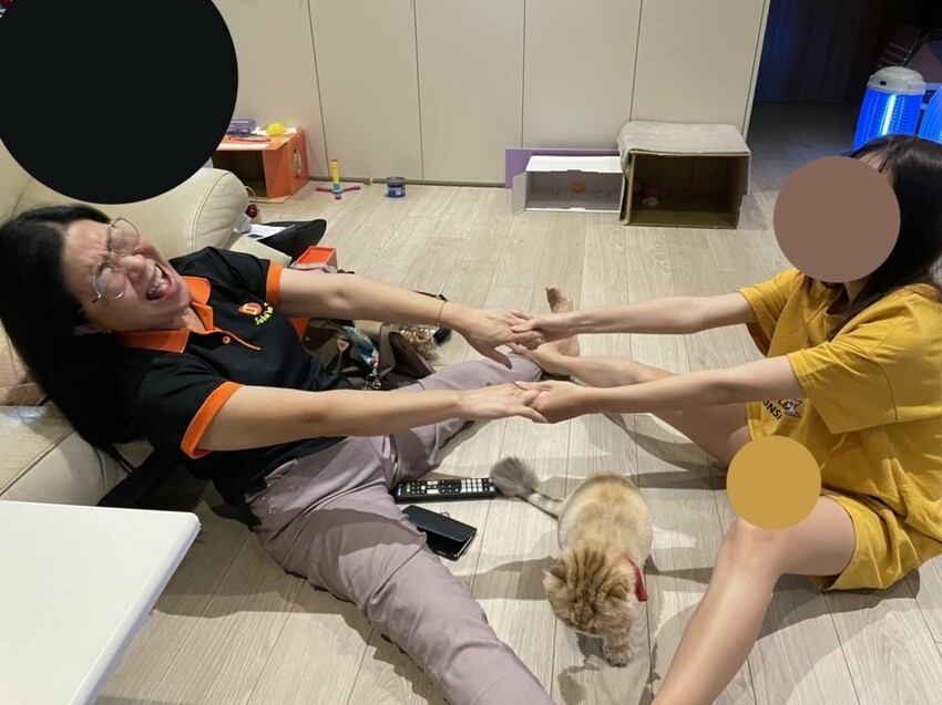 我媽被我拉筋拉到腳很痛我快笑死XD