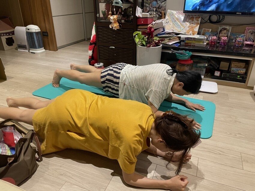 媽媽就說她不定時都要去給推拿師做推拿,直到最近這幾個月,我與姊姊開始自己在家做運動時開始帶著老媽跟著做