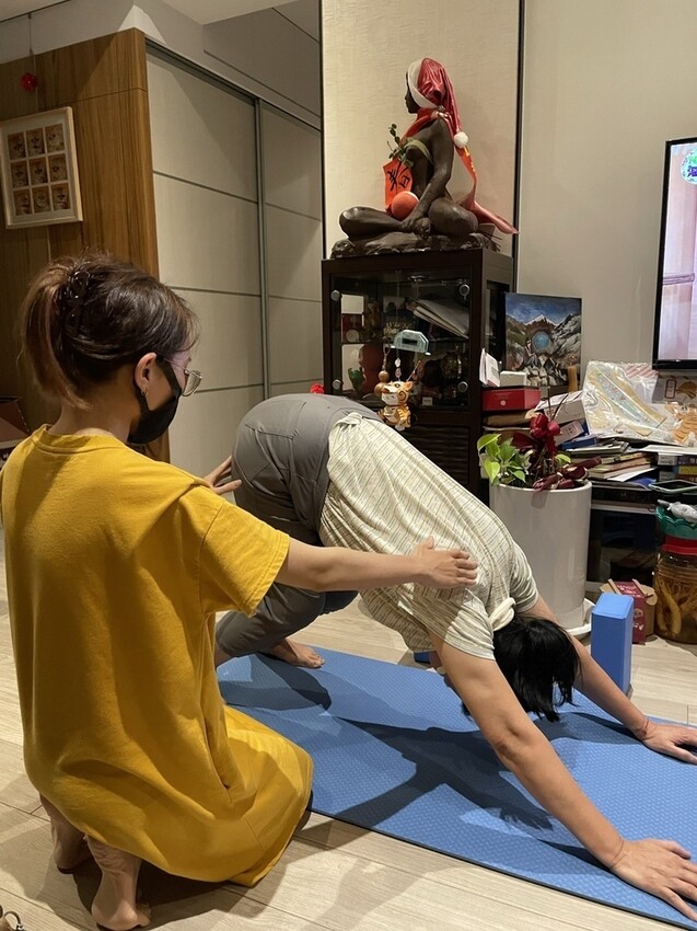 當然她筋骨沒有很好,不過做著做著她開始跟我們說她的腳都沒有很酸痛了