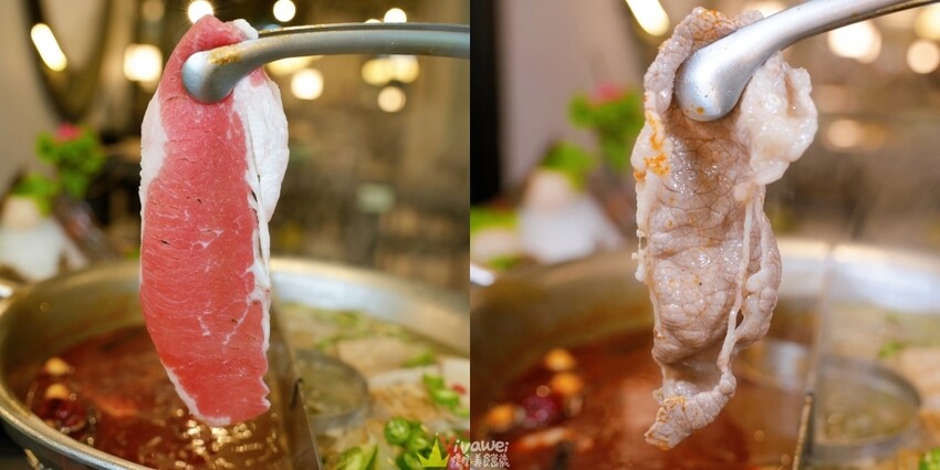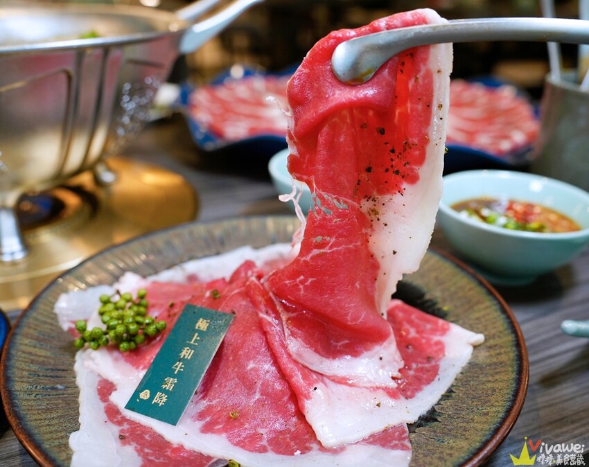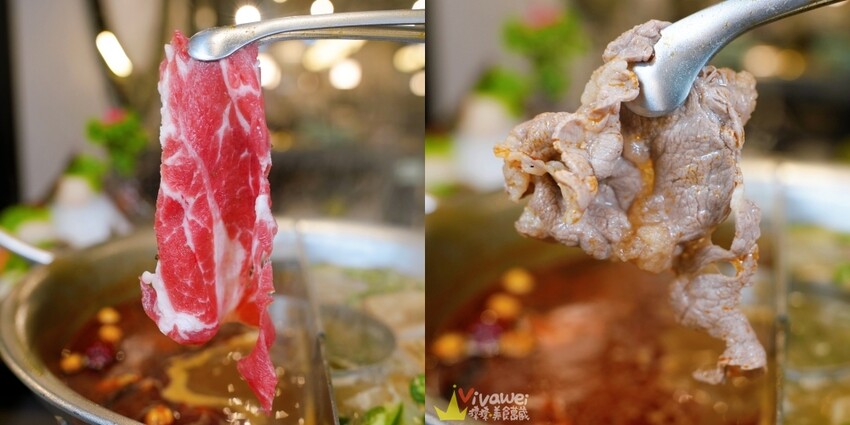 ▲雪花牛建議涮到七分熟享用,雪花牛的油脂分布均勻,不會太膩口,口感挺不錯的!
