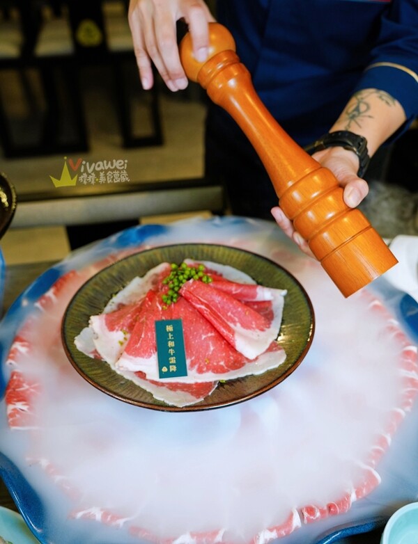 ▲【仙氣頂級牛三拼盛宴】有極上和牛霜降、安格斯低脂牛、雪花牛這三種!上桌後會由服務人員加上現磨的青花椒~加上乾冰的肉盤就是仙氣逼人阿~視覺效果一級棒!
