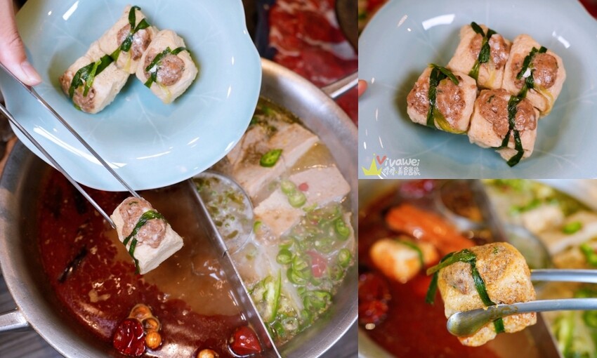 ▲東坡烤麩外觀看起來是凍豆腐,裡面還包著肉塊,放入湯底裡面吸附滿滿的湯汁,一口咬下超級噴汁,非常好吃!