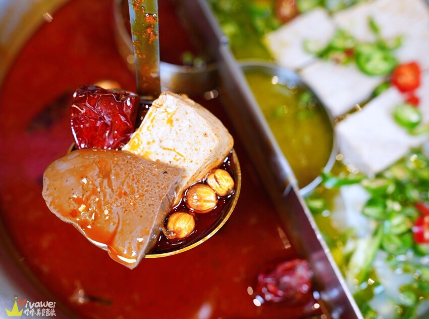 ▲我們這天點的是「青紅鴛鴦鍋」,紅色的是青花椒麻辣鍋,綠色的是青麻椒肥牛鍋。