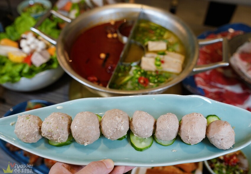 ▲青花驕特色綜合丸的內容物有青花椒貢丸、藏椒爆漿貢丸、芥末爆漿貢丸、軟骨貢丸!