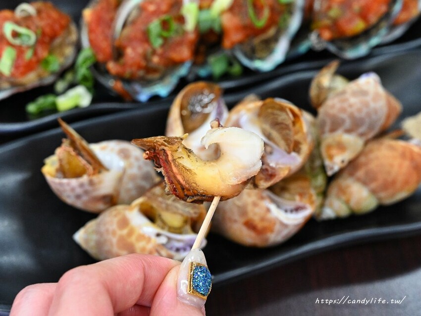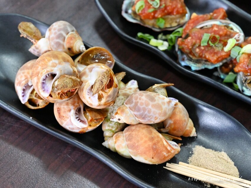 粥狂除了粥品外,還有燒烤系列,烤風螺也好好吃,肉質相當Q彈,旁邊還附上牙籤可以讓大家輕鬆挑出螺肉享用