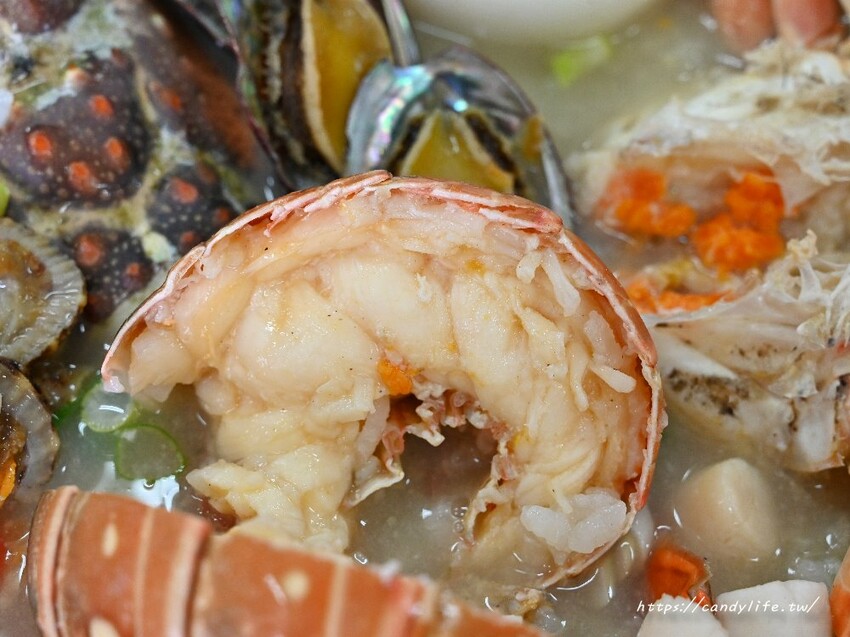 這碗紅蟳粥是粥狂最近新推出的季節限定粥品,採用4隻爆蛋紅蟳入料,除了紅蟳外,還有鮮甜白蝦、花枝、干貝、扇貝肉、蚵仔及蛤蜊,整碗超澎派