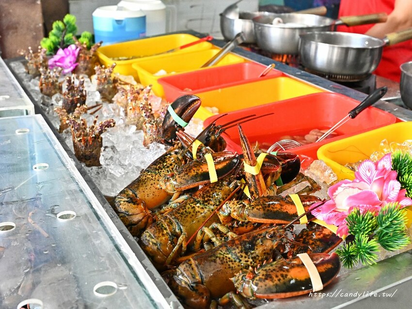 櫃檯前方擺放著各式各樣的海鮮,還有活體波士頓龍蝦、紅蟳等,不過不說,糖糖還以為這裡是賣海產的呢