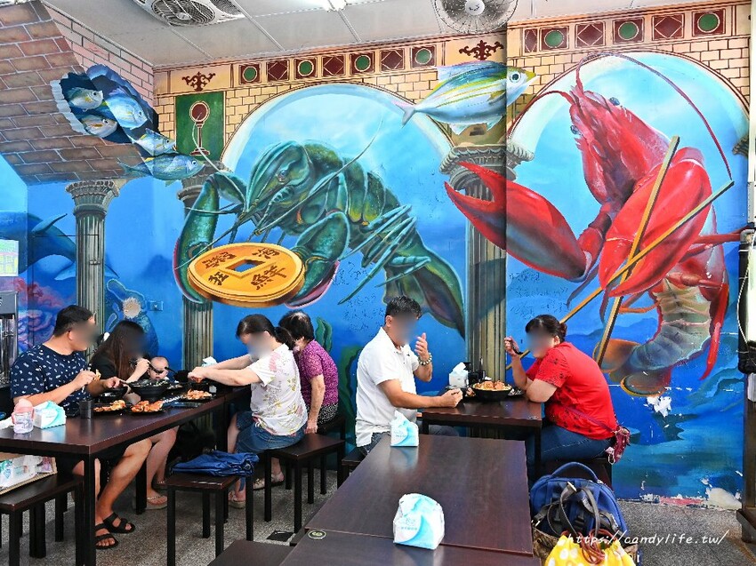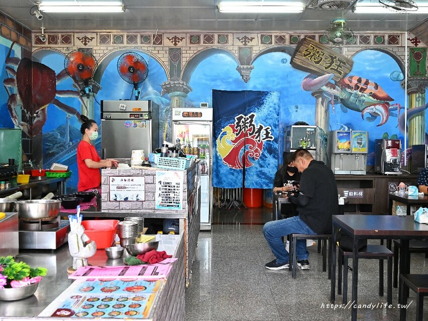 粥狂的用餐空間只有一層樓,空間不算大,雖然裝潢簡單,店家也非常用心呢,在每個牆面上有可愛的3D海鮮圖,栩栩如生的模樣,讓人彷彿置身在海生館裡頭