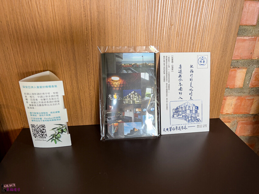旁邊還擺放著明信片,住宿的旅客可以寫下來旅行的美好時光,寄給自己或是家人朋友,寫好後給民宿櫃檯會幫你郵寄,這也太貼心了。