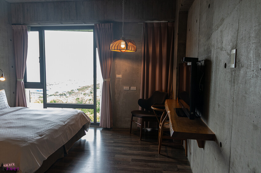 趕緊進來民宿辦理入住,民宿管家超親切又熱心,介紹著民宿的景色,室內的空間也是類清水模的設計,搭上沈穩的石材地磚整個呈現的色調我個人非常喜歡。