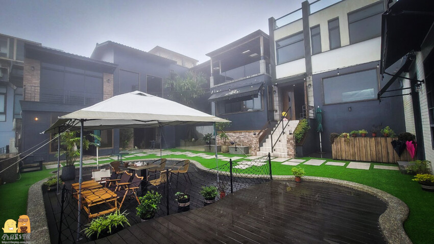 居然還有這麼大的中庭,而且後面還有一棟很大空間的很像私人招待所或著是民宿的空間