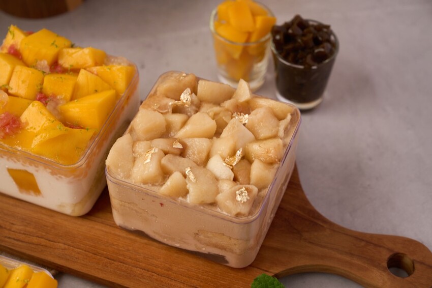售價:鐵觀音芒果巴斯克蛋糕1200元、鐵觀音芒果巴斯克切片220元、芒果巴斯克蛋糕950元、芒果巴斯克切片190元、楊枝甘露生乳盒子大盒420元、楊枝甘露生乳盒子小盒320元、芒果布蕾生乳盒子大盒420元、芒果布蕾生乳盒子小盒320元、鐵觀音芒果生乳盒子大盒460元、鐵觀音芒果生乳盒子小盒360元、紅玉烏龍水蜜桃盒子小盒360元