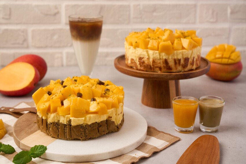 芒果巴斯克蛋糕同樣也是以香甜的巴斯克乳酪蛋糕為基底,上面佈滿了海量的新鮮芒果,除了有販售切片的大小以外,還有整顆的尺寸喔,很適合跟家人朋友們一起分享!
