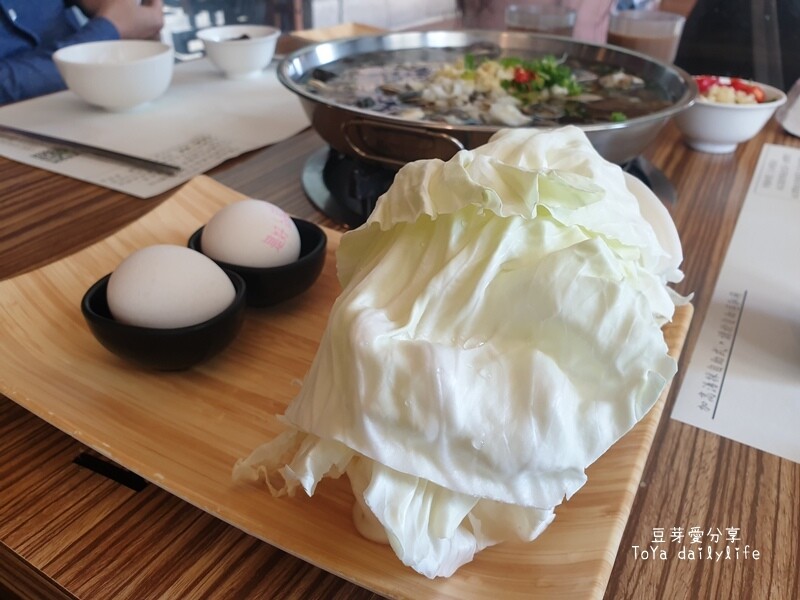 吃完蛤蜊之後,再開始放高麗菜,以及煮肉來吃,