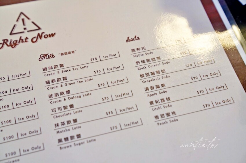Right Now Cafe 旁就有個公有西門停車場,停車非常方便,原本還想說停車是個問題,沒想到旁邊就有個大型地下停車場,走上來不到三分鐘就到咖啡廳。Right Now Cafe 的咖啡飲料種類不少,也有輕食早午餐,價格都不高,以咖啡廳來說算是很平易近人的價格。