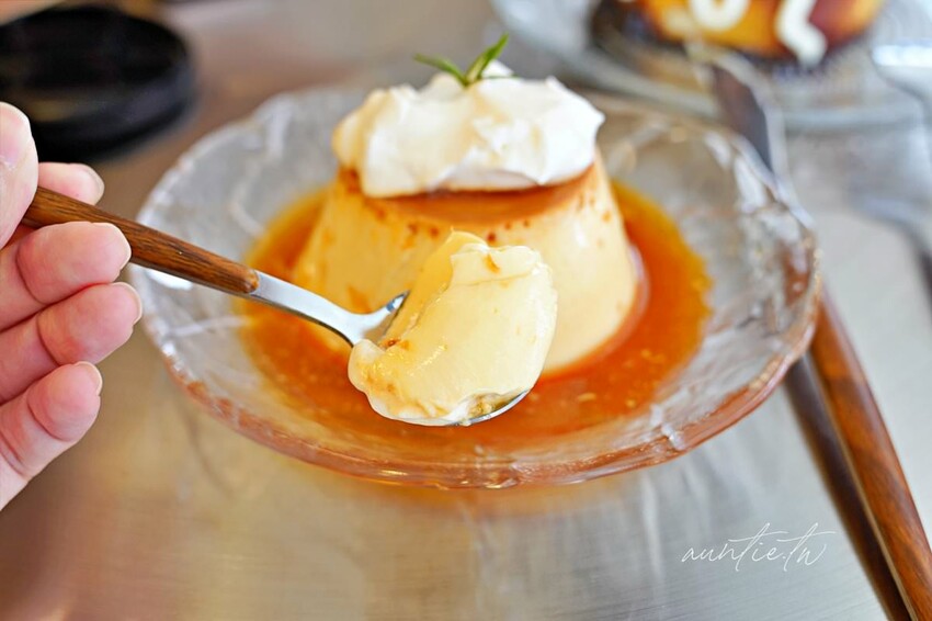 布丁的口感偏扎實一些,焦糖不會太甜還吃得到香濃蛋香,搭配上頭的奶油吃還頗清爽的,味道還算不錯。