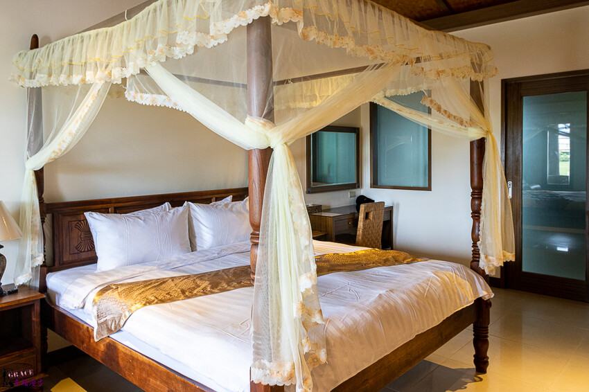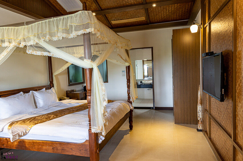 床鋪的部分有著輕柔紗幔,相當浪漫和夢幻啊!每次看到這種房型總會出現少女心,一直狂說好美喔!