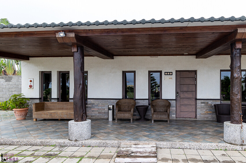 盤古拉墾丁渡假花園民宿一共有10間房,每個房間前面都有著休閒桌椅,可以坐在這裡看看草地景色,或是坐在這裡跟旅伴聊聊天都是非常愜意的事,我們這次是住102的房間。