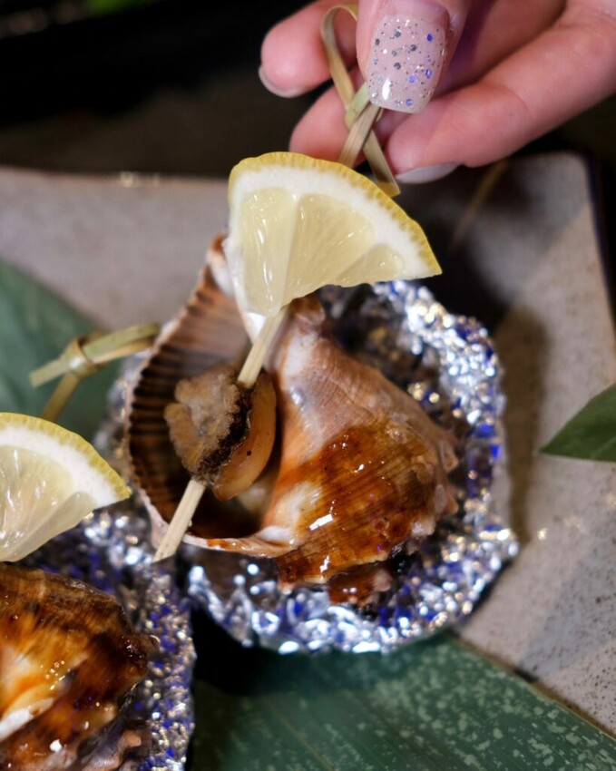 ▼海王螺貼心附上叉子直接取用,充滿嚼感的螺肉,搭配檸檬吃起來更有層次。