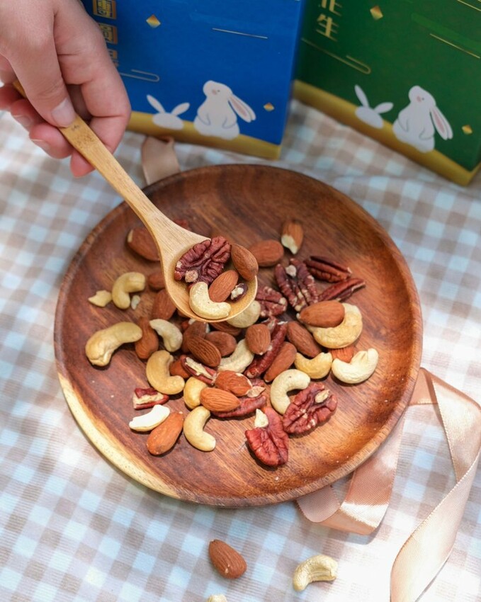 ▼幸福團圓果選用腰果、杏仁、胡桃,以低溫輕烘焙的方式,能吃到食材原始的營養和香氣~