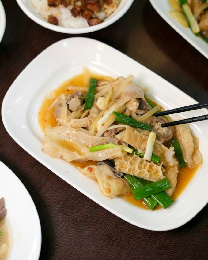 ▼推薦給各位內臟控這道蔥薑牛雜,有牛肚、牛腸、牛肝、牛心等各種內臟,鹹味中加了點醋酸快炒,吃起來完全沒有奇怪的腥味,口味偏重建議搭配著白飯享用!