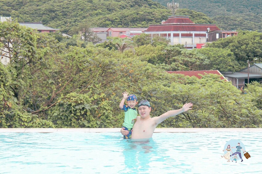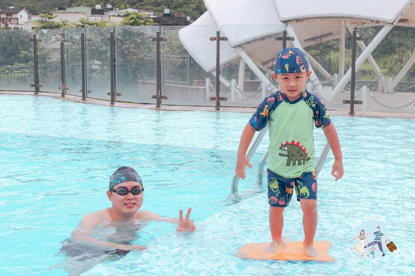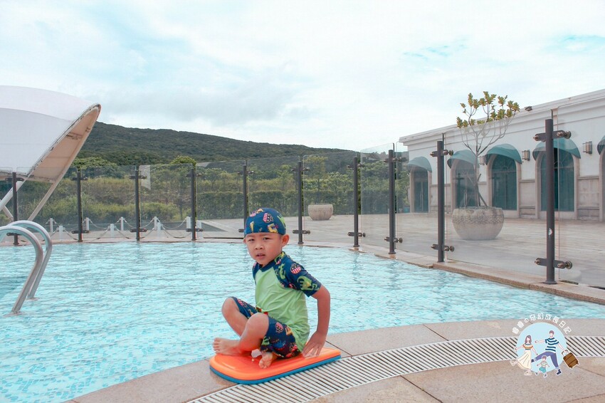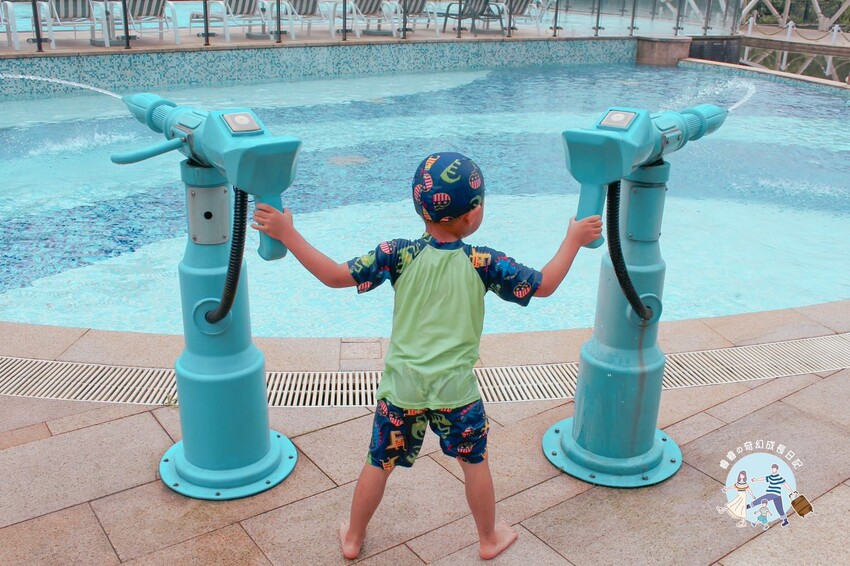 除了大人泳池外,一旁也有小孩池,岸上的水槍讓睿睿玩的很開心,一直跟睿爸你追我射你的遊戲哈哈!
