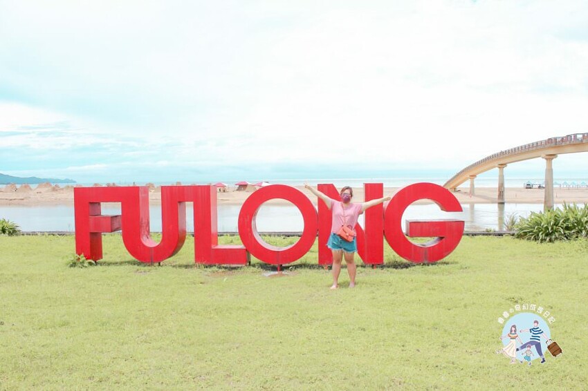 要進入彩虹橋前左邊有條小路,有大大的FULONG可以拍照,大紅色配上天空藍、海水藍是不是非常美呢~