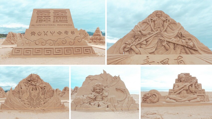 2022福隆國際沙雕展的主題是「霹靂布袋戲」,雖然因為連日大雨導致沙雕展還有1/3沒完成,但可以看到沙雕老師在現場做沙雕,也算一種新奇的體驗~