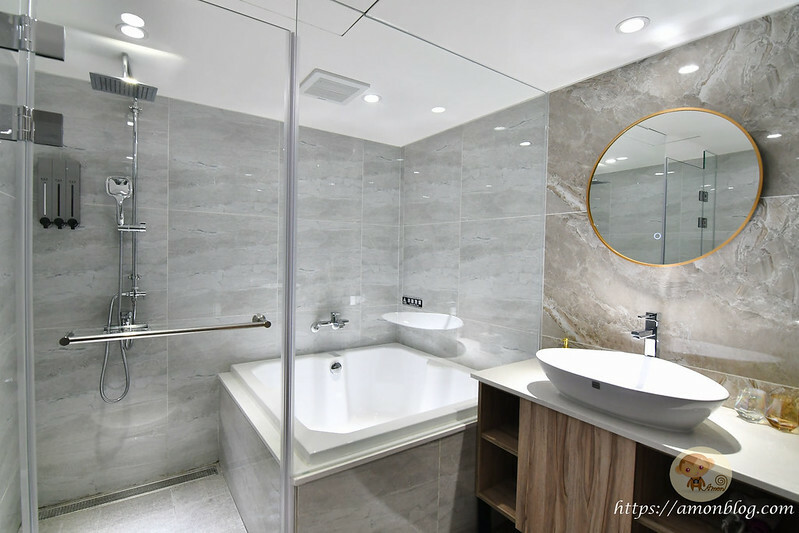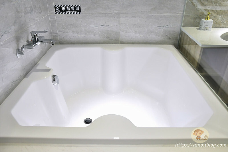 因為浴缸是雙人浴缸的關係,所以浴缸較大,如果有想要淋浴完就泡澡的話,記得要先提早放水,不然可能會等比較久水才會滿。