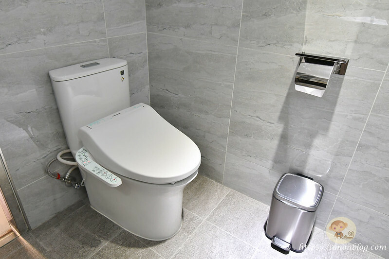 馬桶是免治馬桶且位在廁所角落,空間不會有壓迫感,可以很舒服的解放XD。