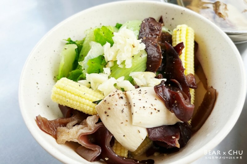 川燙現拌小菜是現場看到的蔬菜類選四種,然後有黑胡椒跟麻辣兩種口味,挑了黑胡椒口味就是蒜末和胡椒拌在一起,就是簡單自然的風味。