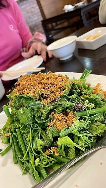 季節時蔬上面加了許多炸酥